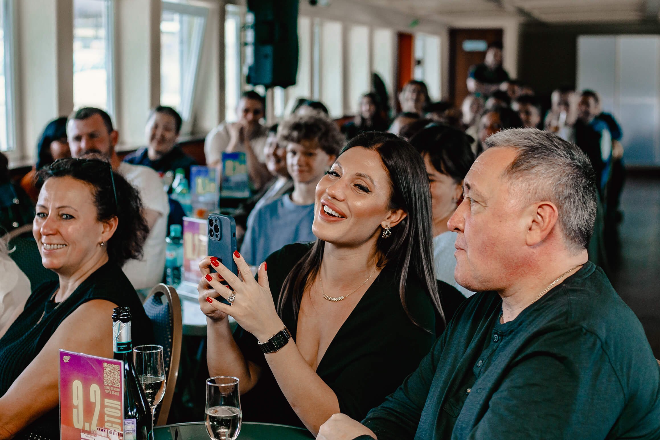 Ваш вечер начнется на нижней палубе теплохода, превращенной в уютный комедийный клуб. Здесь, в атмосфере классического стендапа, для вас выступят три профессиональных комика — участники громких проектов на ТНТ, Labelcom и StandUp Club #1. Мы сохраняем интригу и не раскрываем имена заранее, но гарантируем: каждую неделю вас ждет новый звездный состав и только проверенный материал. Располагайтесь за столиками, заказывайте любимые блюда и напитки — впереди час отборной комедии и живого импровизационного общения с залом.